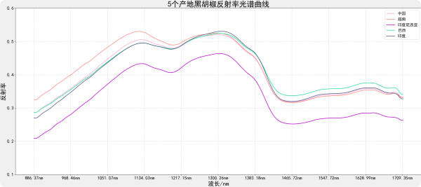 根据客户需求,需要采集不同产地黑胡椒900-1700nm光谱数据。