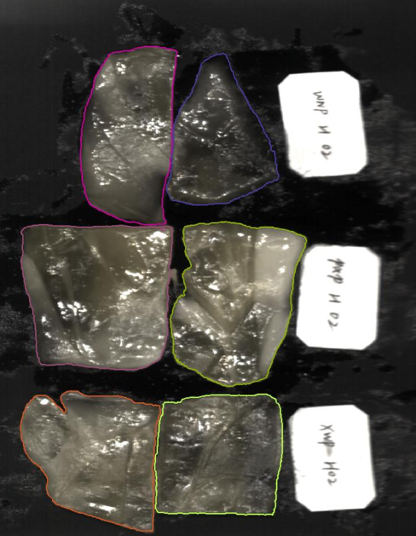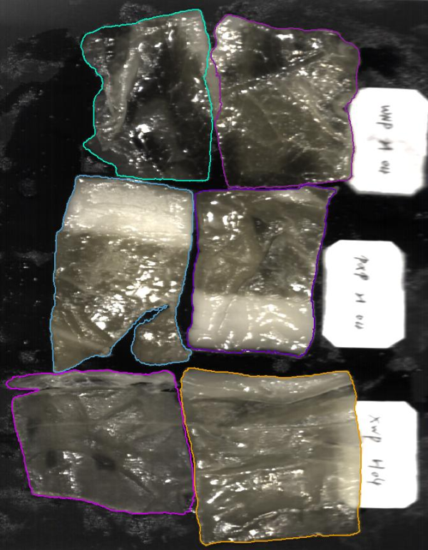 图像采集数量:每张高光谱图像中放置 3 组不同产地的样本(即包含 XW、PX、WN 产地各 1 组),共采集 4 张图像,累计覆盖不同产地、不同批次的火腿样本,确保样本数据的多样性与代表性,为后续产地溯源模型构建提供充足数据基础。