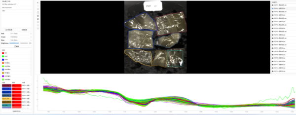 数据采集方式:反射模式采集,采集样品的反射率数据。透射模式采集,采集样品的透过率数据:数据采集流程:设备调参:调节相机高度,使相机视场可以覆盖所有样品调节镜头光源到最大调节镜头焦距,使样品图像最清晰,曝光时间调整到合适的值