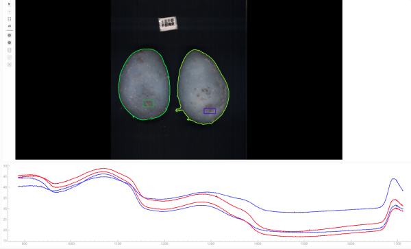 1、使用 400-1000nm、900-1700nm 相机采集土豆的光谱数据;