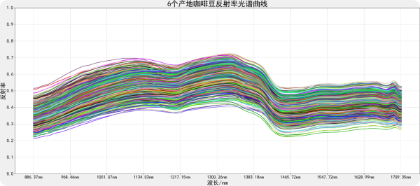 根据客户需求,需要采集不同产地咖啡豆900-1700nm光谱数据。