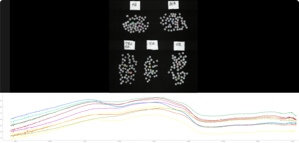 数据采集方式:反射模式采集,采集样品的反射率数据。透射模式采集,采集样品的透过率数据:数据采集流程:设备调参:调节相机高度,使相机视场可以覆盖所有样品调节镜头光源到最大调节镜头焦距,使样品图像最清晰,曝光时间调整到合适的值