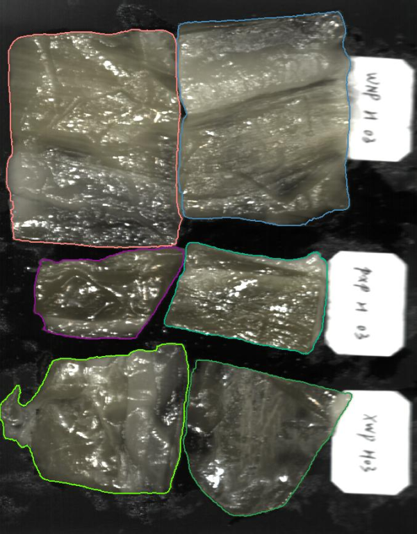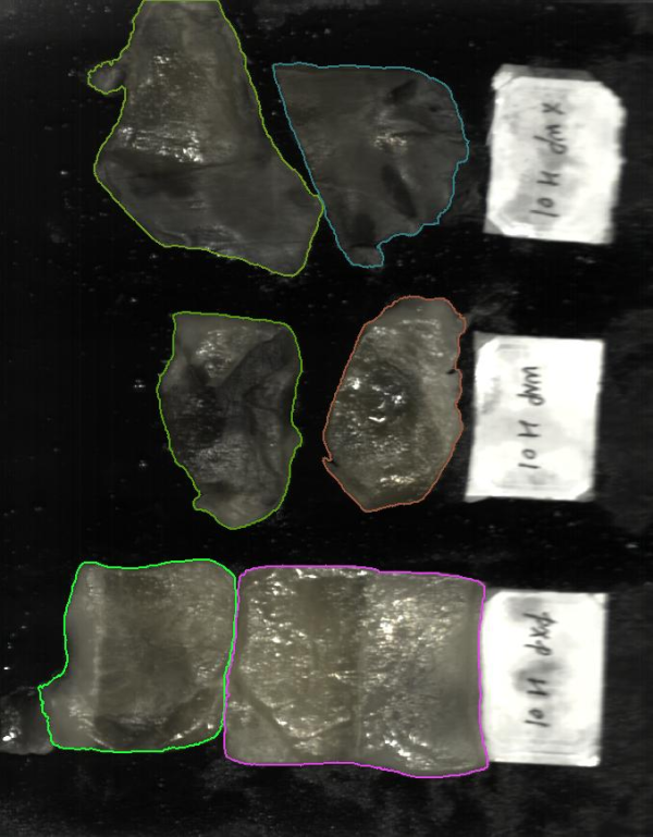图像采集数量:每张高光谱图像中放置 3 组不同产地的样本(即包含 XW、PX、WN 产地各 1 组),共采集 4 张图像,累计覆盖不同产地、不同批次的火腿样本,确保样本数据的多样性与代表性,为后续产地溯源模型构建提供充足数据基础。