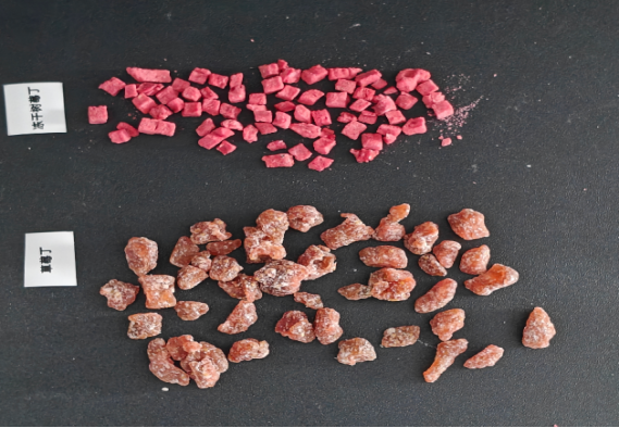 初步测试实验,采集草莓丁和冻干树莓丁样品